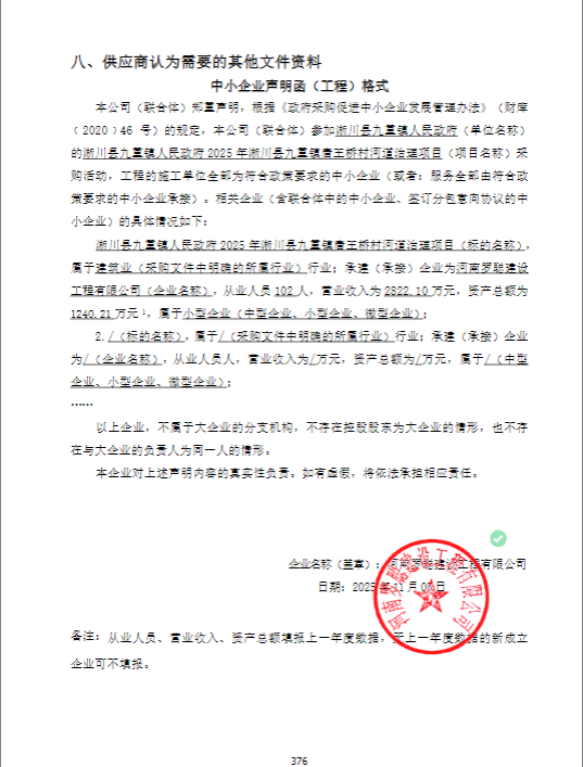 1 ******人民政府2025年淅川县九重镇唐王桥村河道治理项目 新建浆砌挡墙、新建混凝土地坪、栽植乔木、沟渠清淤等项目 合同签订后 60 日历天 赵云来 ******3479